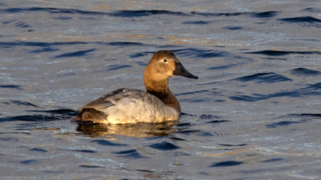 At the bridge over the Delta Mendota Canal, both Rich and I stopped to quickly photograph a female Canvasback that was swimming away.