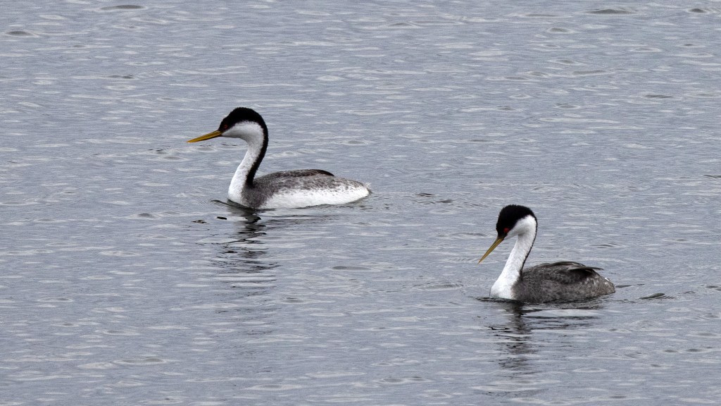 For a comparison, Clark’s Grebes have an orangish-yellow tint to their bills and their eyes are entirely or mostly surrounded by white facial feathers.