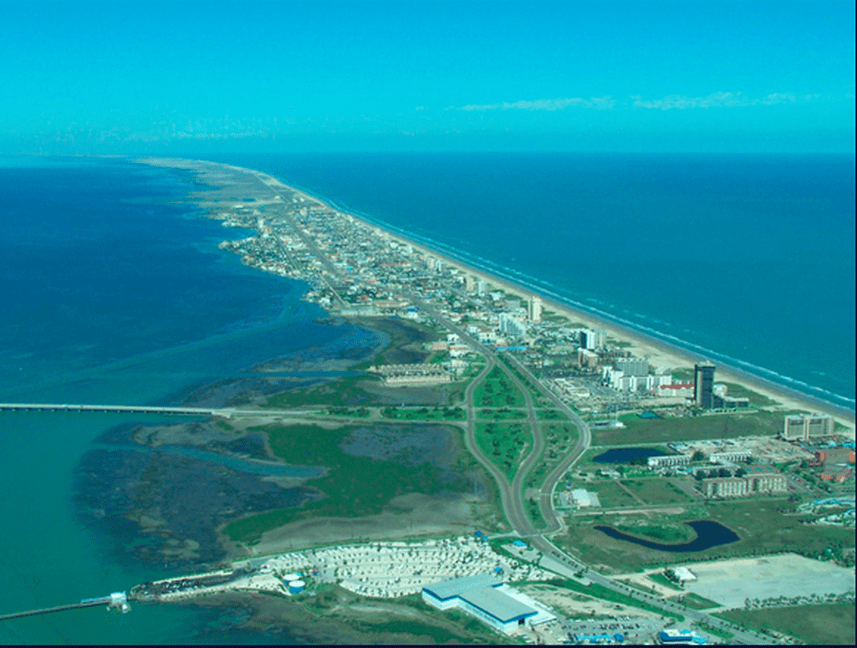 The island is mostly prairie/grasslands with ephemeral marshes and ponds bordered on the east by the Gulf of Mexico and on the west by the Laguna Madre. The highest elevation is approximately fifty feet.