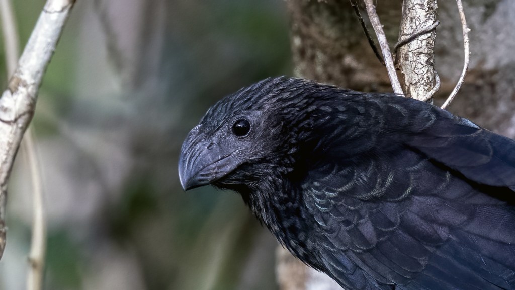 Ranging from the tip of Northern Chile to the lowlands of Southern Texas, the Groove-billed Ani is a member of the Cuculidae Family that also includes Roadrunners and Cuckoos. It can be found throughout the Yucatán Peninsula often found foraging on the arthropods flushed up from ant swarms.