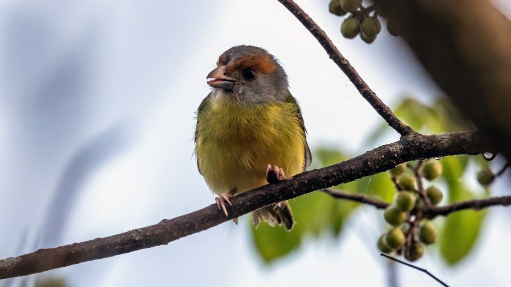 The Rufous-browed Peppershrike is a member of the vireo family and can be found from Central Mexico south through Central America and into most of South America. It is generally found in the upper canopy of trees and tends to be very vocal all year round. Its song, which it will repeat over and over, kind of sounds like someone saying “Do you wash every week?”.