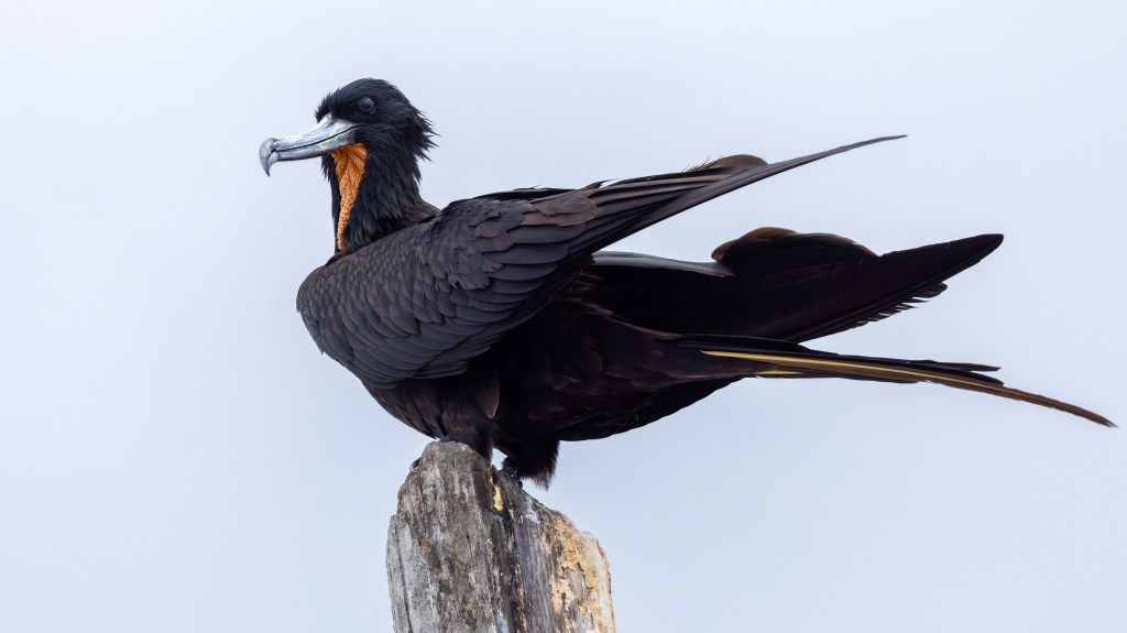 Cuando abordamos el bote de Chino para comenzar nuestro recorrido por la bahía, teníamos muchas fragatas, cormoranes y gaviotas reidoras volando a nuestro alrededor.