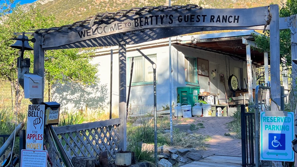 We walked towards the entrance not knowing exactly where to go and we found a pretty Archway with the name Betty’s guest house. There was a little gazebo in front with two hummingbird feeders that was actively feeding several different hummingbirds.