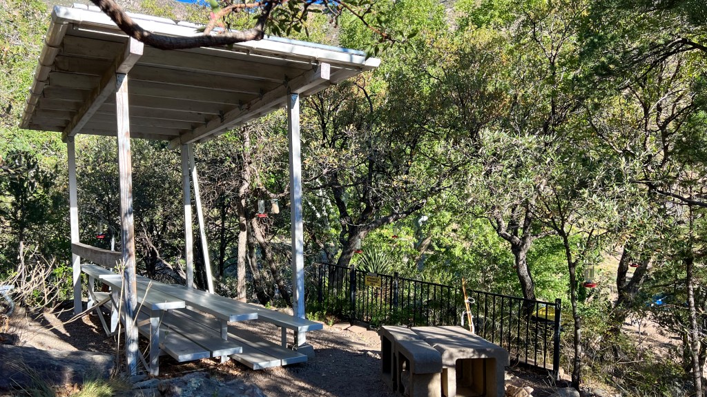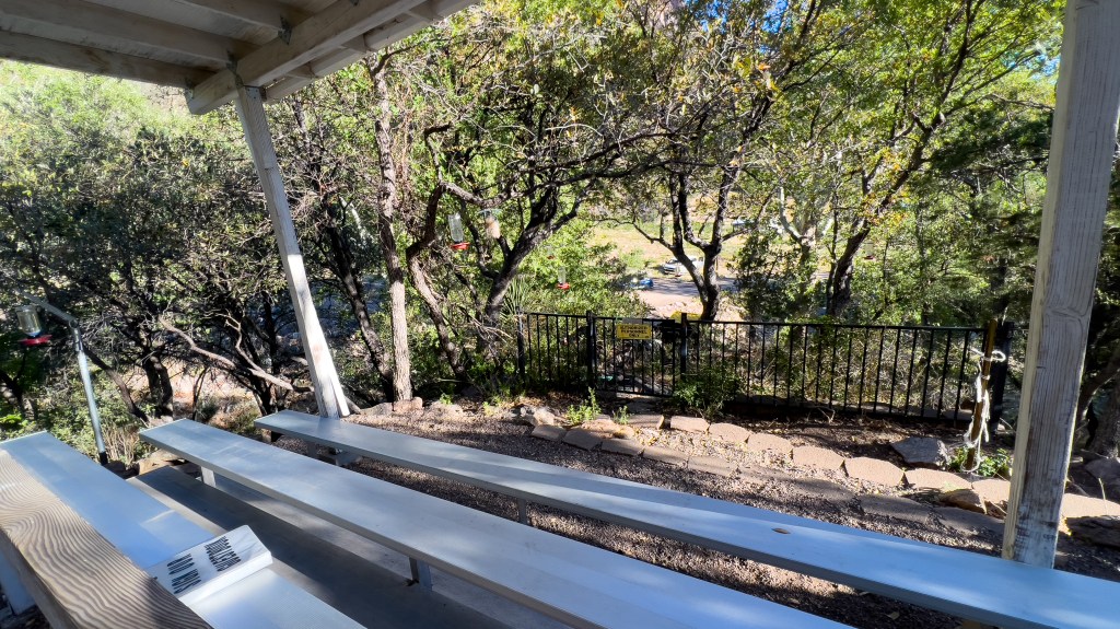 This morning’s destination was to include my first ever visit up Miller Canyon to visit Beatty’s Guest Ranch. This hummingbird hotspot is at the end of Miller Canyon Road, 2.6 miles from Hwy 92 up a bumpy dirt road. At the end of the road we found a Forest Service parking area with trail access into the Miller Peak Wilderness Area, but that wasn’t our destination. We parked in that lot and walked the short distance up the road to Beatty’s Guest Ranch.