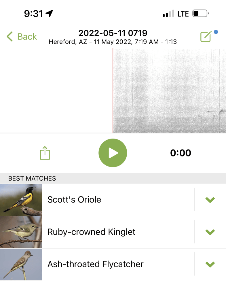 Another group of birders caught up with us that we had birded with the night before at the Ash Canyon Bird Sanctuary and we told them about the White-eared Hummingbird female and wished them good luck. As we walked back towards the car we heard a very unusual bird call that I did not recognize. We quickly opened up our Merlin Bird app to see if it would give us some idea of what we were looking for and according to the app we were listening to Scott’s Orioles singing.