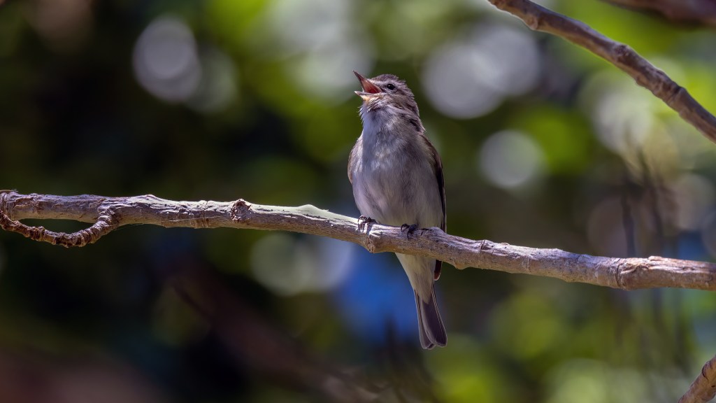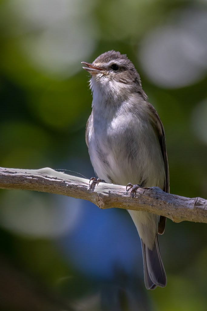 While the Warbling Vireos had more of a run-on warble that it crooned from the upper canopy.