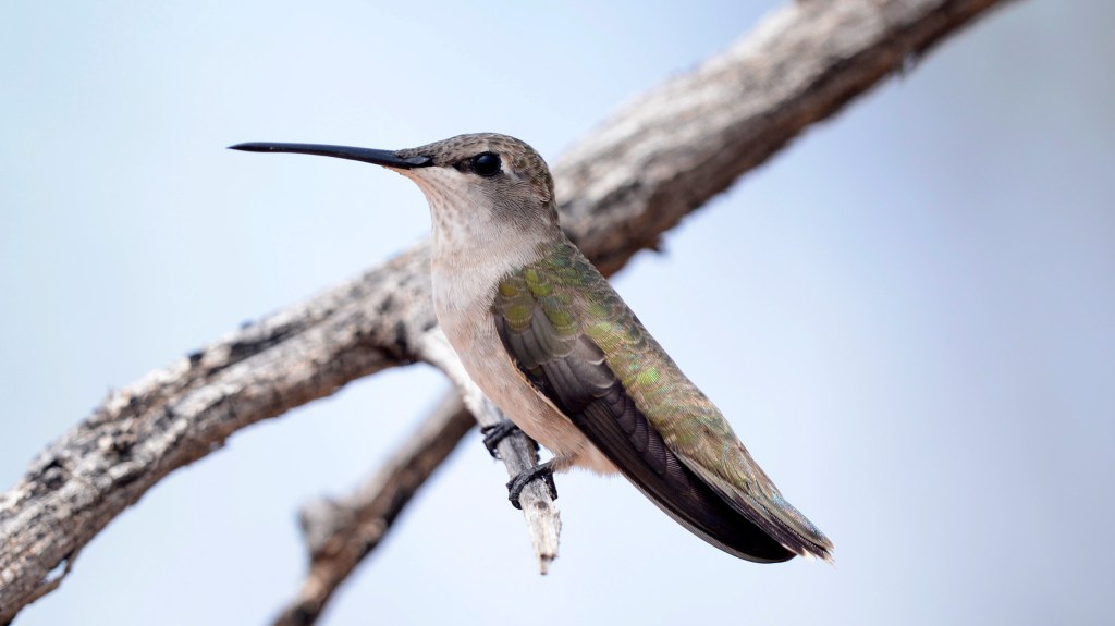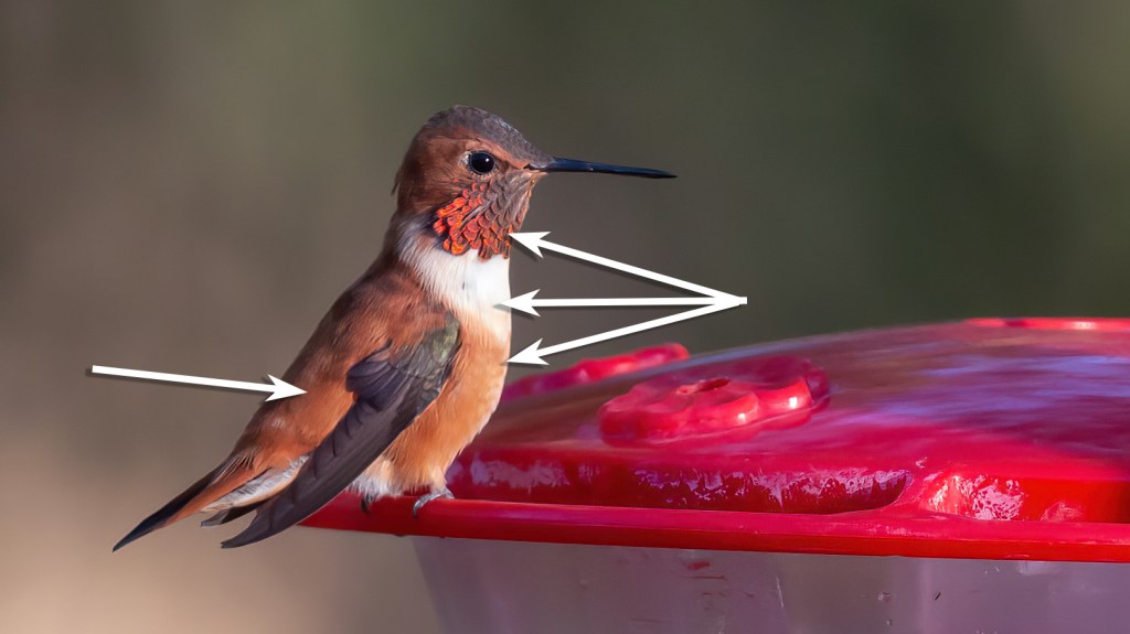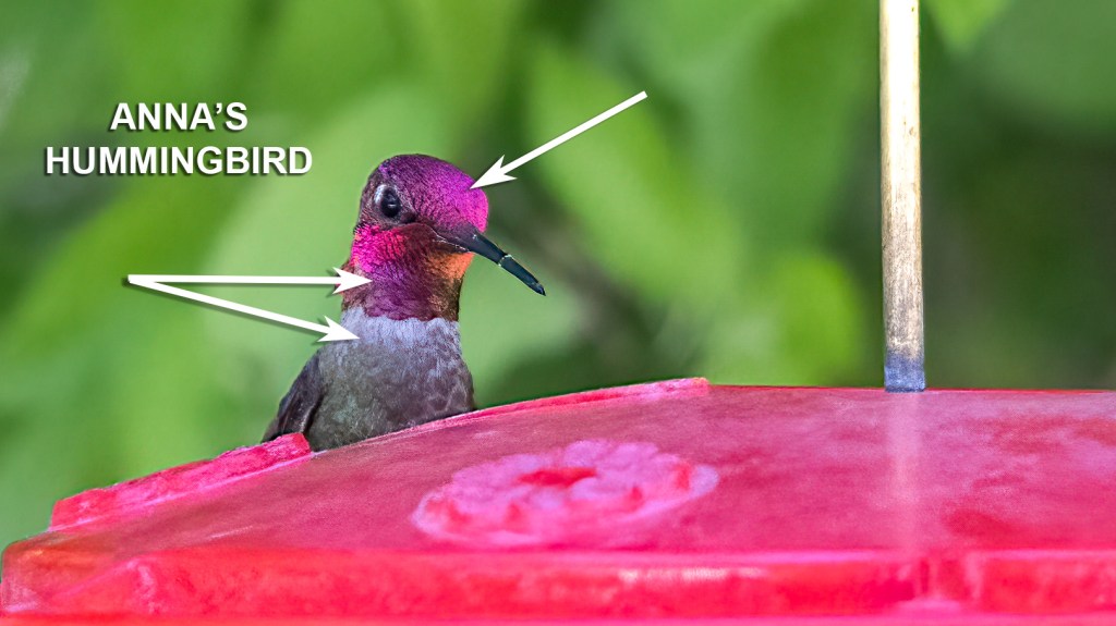 Females and first-year male Anna’s Hummingbirds are more challenging as they lack the pinkish-red gorget and head feathers.