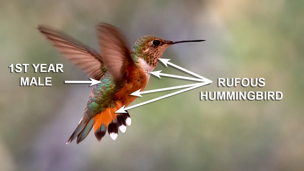 As with the other hummingbirds featured in this post, females and first-year males lack the colored gorget and make identification a challenge that is best left for the experts.
