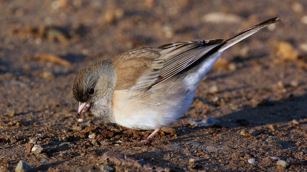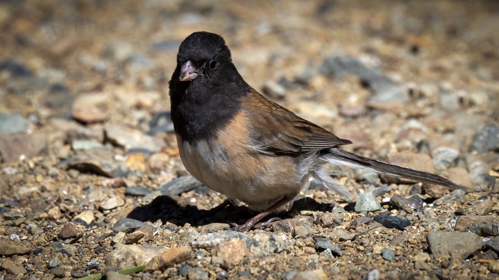 The Dark-eyed Junco is a Common Winter Visitor to California’s Central Valley and can be found in many habitats. There are 2 species of Junco in the US, the Dark-eyed Junco and the Yellow-eyed Junco. However, the Yellow-eyed Junco is only found in SE Arizona and is not going to be found in the Central Valley. Check out the comparison between the two species below.