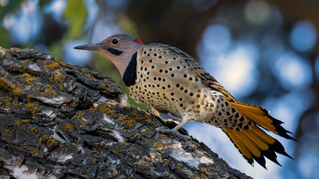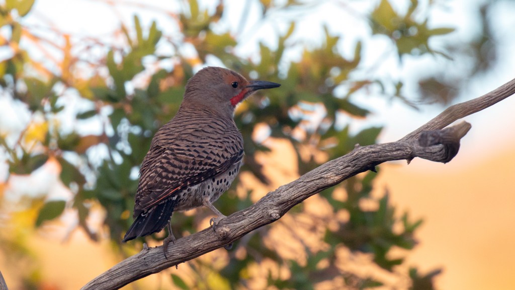 Ten subspecies of northern flicker are recognized with 4 sub-species in the “Yellow-shafted” form and the other 6 being in the “Red-shafted” form. At one time these two primary forms were considered two separate species called the yellow-shafted flicker (C. auratus) and the red-shafted flicker (C. cafer). But they commonly interbreed where their ranges overlap and are now considered one species by the American Ornithologists Union. The vast majority of Northern Flickers observed in the Central Valley are of the “Red-shafted” form.