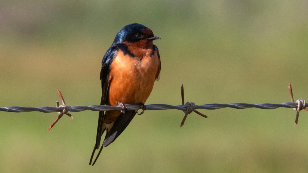 The Barn Swallow (Hirundo rustica) is a common passerine bird species that can be found in the Central Valley of California during the breeding season, which typically lasts from March to September. These birds have a distinctive appearance, with a long forked tail, blue-black upperparts, and reddish-buff underparts. The male and female are similar in appearance, but the male typically has longer tail feathers.