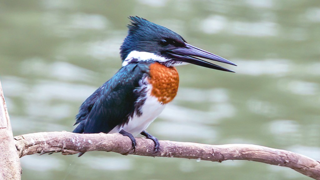 The Amazon Kingfisher (Chloroceryle amazona) is a stunning bird species found in Belize, a small Central American country with a rich biodiversity. These kingfishers are commonly found along the banks of rivers, streams, and lagoons in the lowland rainforests of Belize. They have a distinctive blue-green iridescent color on their upperparts and a rufous belly and breast.