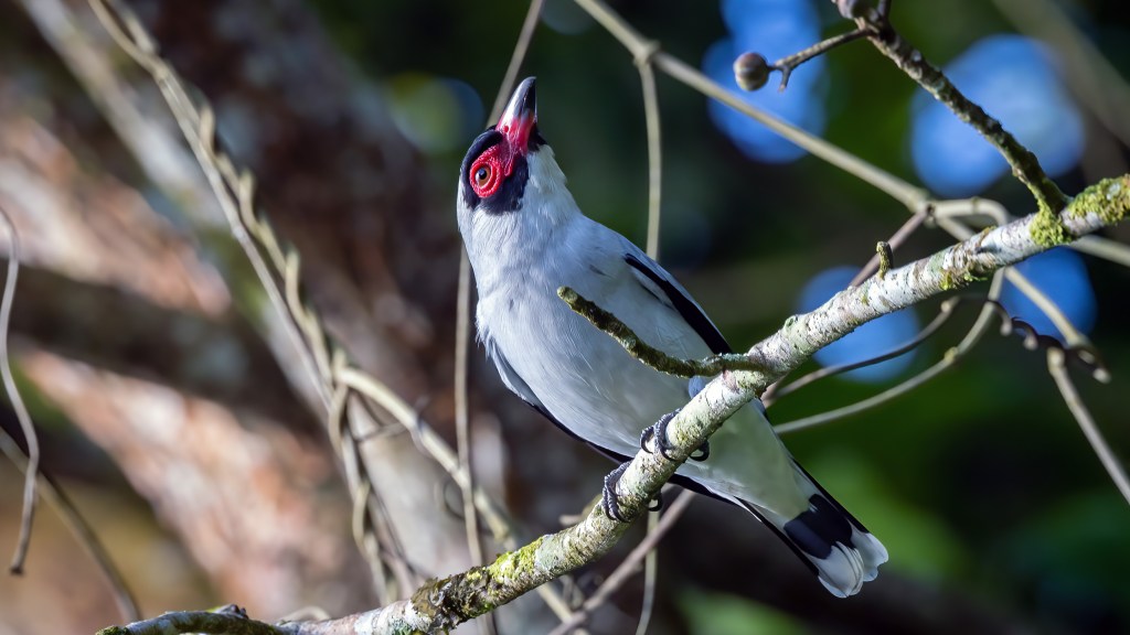 The Masked Tityra feeds on a variety of fruits, insects, and small vertebrates, including lizards and frogs. They are also known for their unique breeding behavior, which involves the male building a nest out of sticks and presenting it to the female. The female then lines the nest with feathers and other soft materials before laying her eggs.