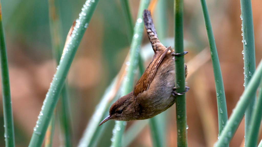 Marsh Wrens are highly territorial birds, with males singing loudly and continuously to defend their nesting territories during the breeding season. They build intricate, globular nests made of cattails, sedges, and other marsh vegetation. The female lays 4-7 eggs, which she incubates for about two weeks. Both parents feed and care for the chicks, which fledge after about two weeks. Marsh Wrens are primarily insectivorous and feed on a variety of small invertebrates, including spiders, caterpillars, and beetles.