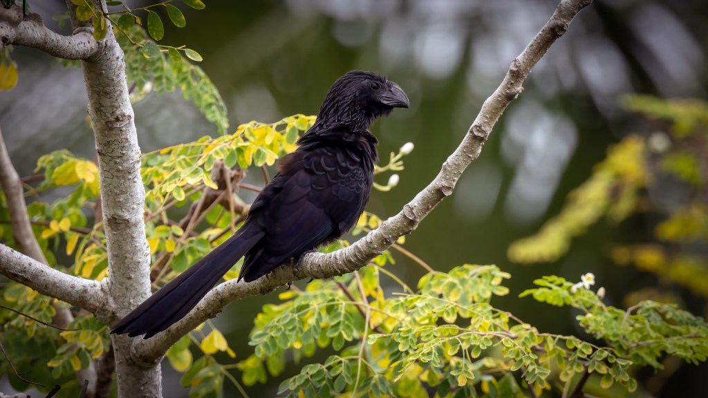 In terms of natural history, Groove-billed Anis are fascinating creatures. They are cooperative breeders, meaning that several individuals will help to raise the young of a single breeding pair. They build communal nests in thorny shrubs or trees and lay eggs that are incubated by all members of the group. Once the chicks hatch, they are fed by both parents and other group members until they are ready to fledge. These birds are also known for their unusual vocalizations, which include a range of whistles, cackles, and grunts.