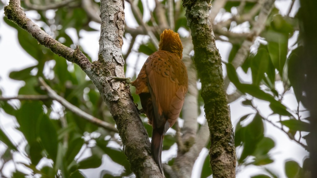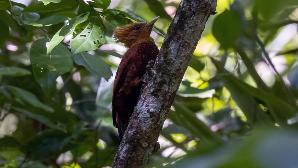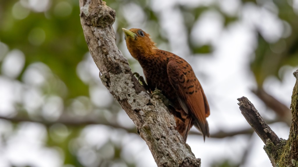 This species is typically found in mature forests, especially those with large trees and clearings. They are known to be fairly common in Belize and can be found in both lowland and montane forests. Chestnut-colored Woodpeckers are primarily insectivores, feeding on ants, beetles, and other insects, as well as fruits and nuts. They are cavity nesters, excavating their nests in dead or decaying trees.