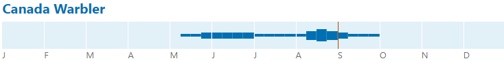 The Canada Warbler is a localized, uncommon breeder to fairly common spring and fall migrant of the Boreal Forests of Central Saskatchewan. It is a small boreal songbird of the New World warbler family (Parulidae) that summers in Canada and northeastern United States and winters in northern South America.