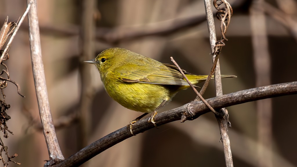 Orange-crowned Warbler is a small, inconspicuous songbird found across North America. Its plumage is primarily yellowish olive-green, making it blend well with its habitat. As the name suggests, the orange crown is a key field mark, although it can be quite subtle and is often concealed.