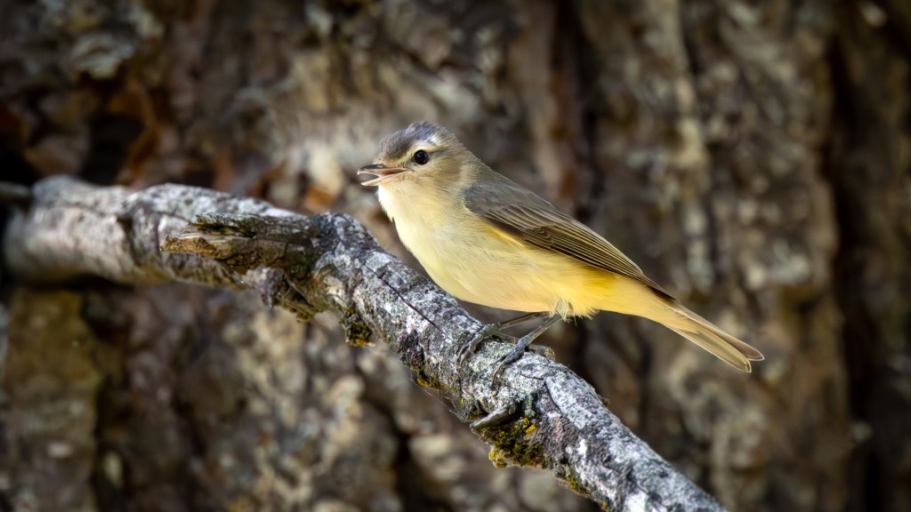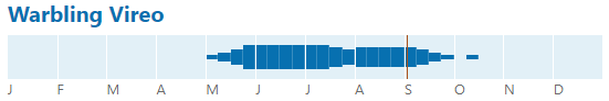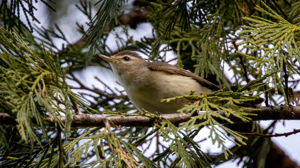 Warbling Vireos prefer deciduous and mixed woods, aspen groves, poplars, shade trees. They breed in open deciduous or mixed woodland; also in orchards, shade trees of towns. They avoid unbroken mature forest.