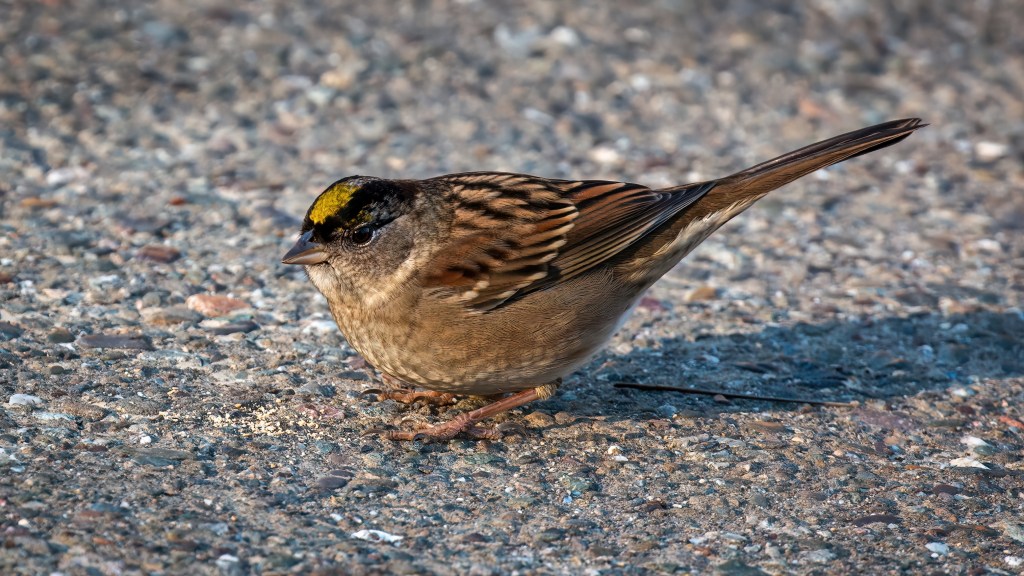 The Golden-crowned Sparrow is a Common Winter Visitor in California’s Central Valley and can be found in backyards, parks and any habitat with shrubs and trees.