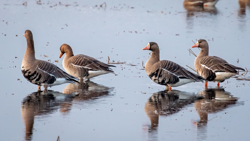 Despite its name, the most distinctive feature of the Greater White-fronted Goose is not the white patch on its face, but rather the black barring on its belly. This unique pattern is like a “fingerprint” – no two geese have exactly the same pattern.