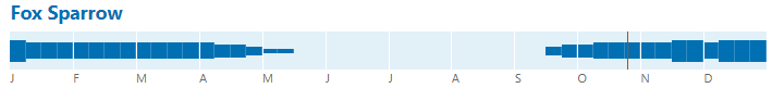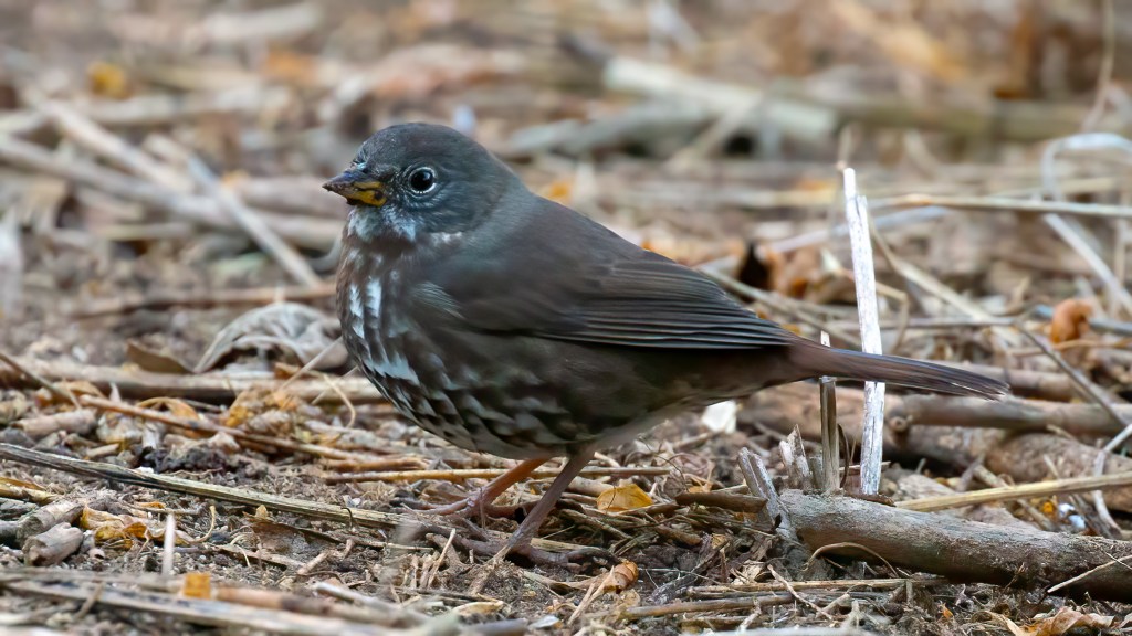 The Fox Sparrow is a Fairly Common Winter Visitor in California’s Central Valley and can be found in habitats with dense shrubs.
