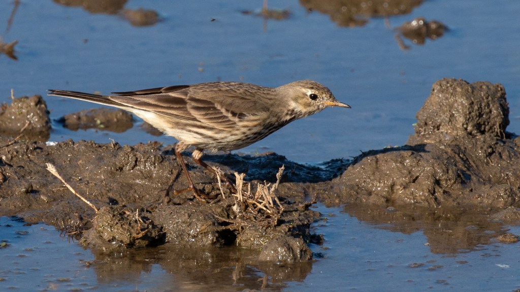 The American Pipit is a Common Winter Visitor in California’s Central Valley and can be found in Grasslands and Freshwater Wetlands.