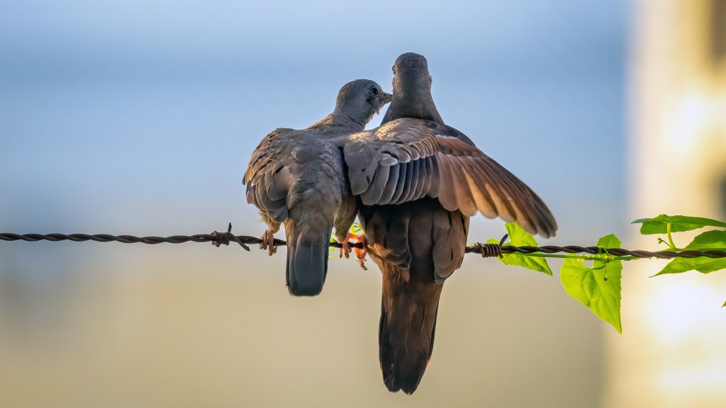IDENTIFICATION: Small, well-named ruddy dove of humid open and semi-open areas, often in villages and even towns, where sometimes perches on wires. Often in groups, sometimes even a hundred birds, which flush explosively from underfoot. Male is ruddy overall (but much paler in West Mexico); female is plain grayish brown overall, lacking scaly breast of slightly smaller Common Ground Dove. Like other ground doves, both sexes of Ruddy show bright rusty wing patches in flight.