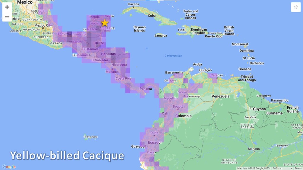 DETAILS ABOUT SIGHTING: We got in very late to Tulum due to flight delays and lost luggage and had to leave early to meet up with Miguel Amar Uribe from Amar Aves, Mexico Kan Tours who was going to lead us on our first adventure birding in the Yucatan. Miguel met us with a big smile and we were off to explore the pueblito of Chunyaxché and learn about the bird life and cultural history of the area. It was pleasant, slightly warm and humid, with lots of billowing clouds above us. Over the next 2 1/2 hours we would add 52 species to our first checklist for Mexico and discover 25 new “Lifer” species. For me, Lifers #624 to #648.