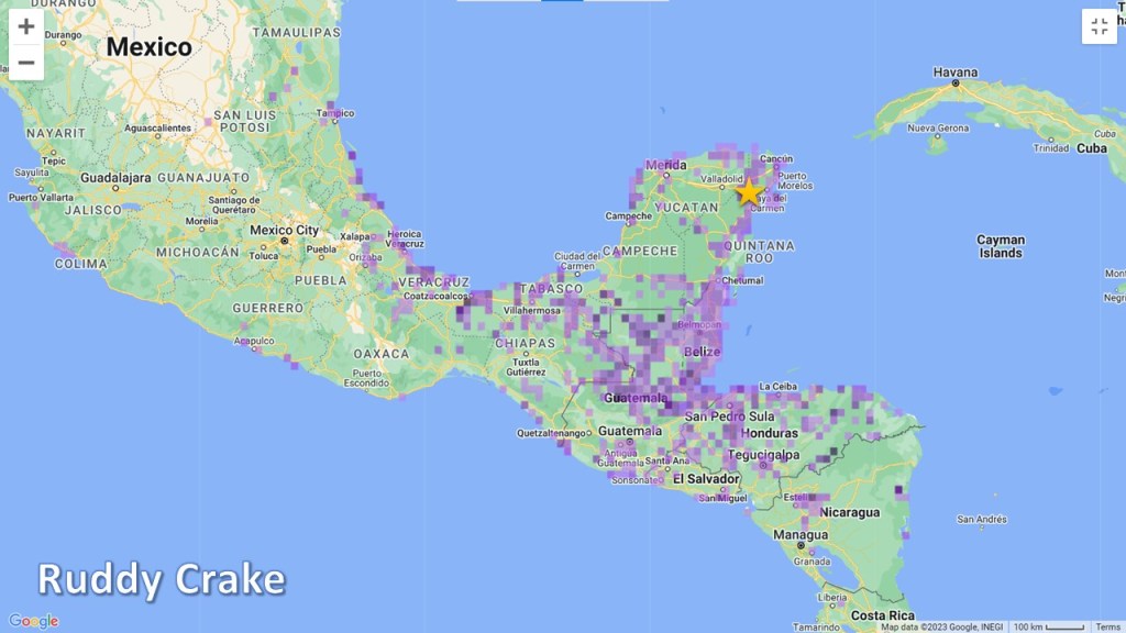 PHOTOS TAKEN: No images were captured of the first crakes on Cozumel, but many were successfully photographed on subsequent birding expeditions. All images below are from near Río Lagartos, Yucatán, MX