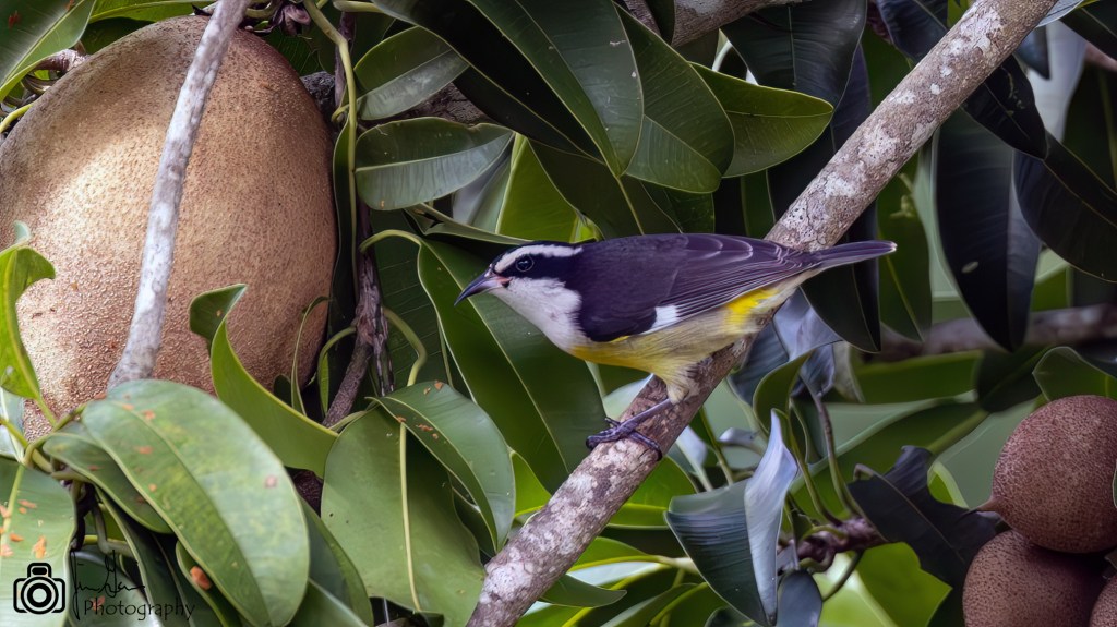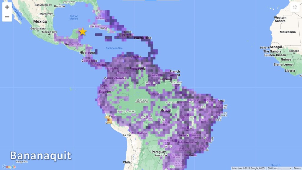 IDENTIFICATION: Tiny, active, warbler-like bird of tropical and subtropical forest edge, woodland, and gardens. Feeds on nectar and fruit, and in some areas visits bird feeders. Variable plumage across range, especially in the Caribbean, but always note small size and sharp, slightly decurved bill. Most populations have a bold white eyebrow and yellow underparts. Throat color varies from pale gray on mainland (Mexico to South America) to white on some island populations (including Cozumel) or sooty gray (Greater Antilles). Song is variable across range but usually high-pitched and scratchy.