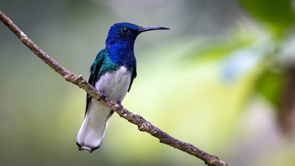 The White-necked Jacobin (Florisuga mellivora) is a medium-sized hummingbird found across a wide range of habitats. Its distribution extends from southern Mexico south through Central America to Bolivia, Brazil, and central Argentina. Additionally, it occurs in Trinidad and Tobago. These jacobins inhabit lowland and foothill tropical forests, second-growth woodlands, plantations, parks, and gardens. While their population status has not been quantified, they are considered uncommon to common in most of their range and are able to adapt to human-altered landscapes.