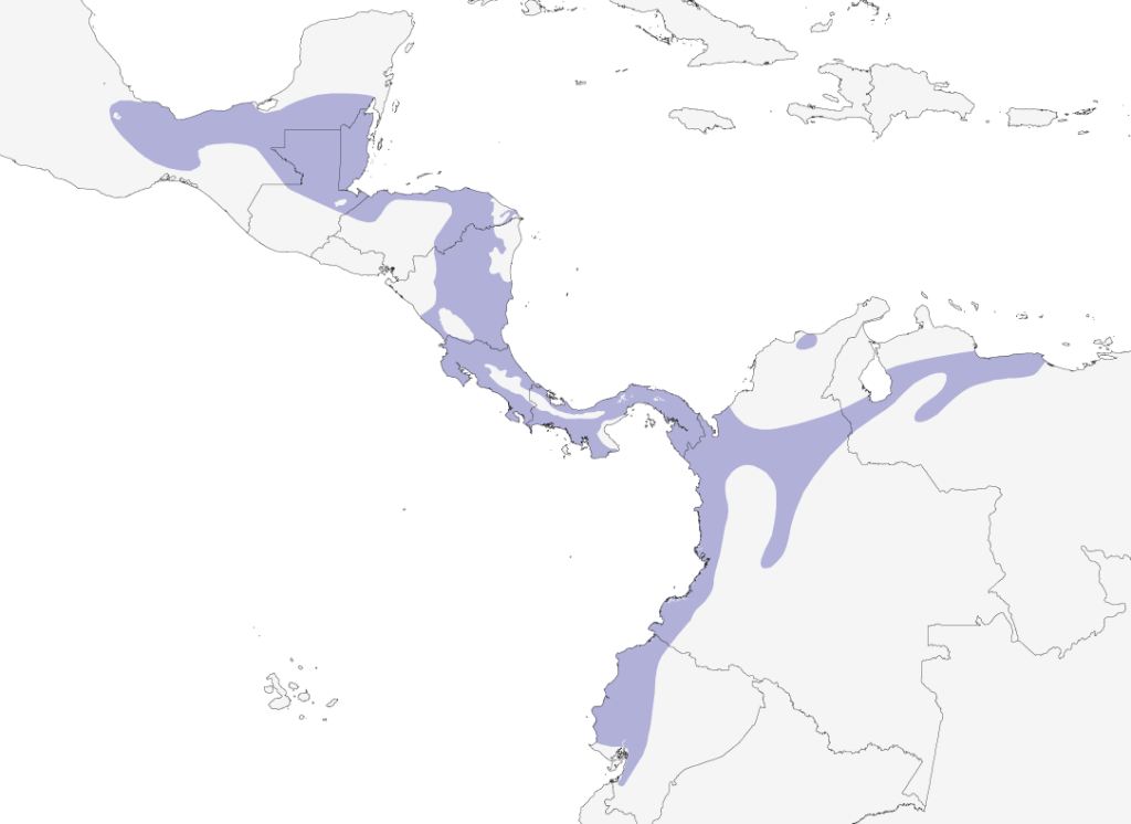 The noticeably loud wingbeats of this tiny hermit often alert you to its presence before you see it. Males also sing together at leks for much of the year—frequently for 10-15 minutes at a time—making them easier to locate. Stripe-throated Hermits are commonly found in the understory of a variety of humid habitats and fly in repeated circuits to feed on the nectar of scattered flowers. In both Costa Rica and Panama, some individuals nectar rob from the base of Scutellaria or Pavonia flowers. (from Birds of the World)
