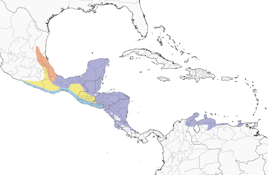 In Costa Rica we first spotted this species at Rancho Naturalista at the feeders and again at Chilamate Rainforest Eco Retreat near Sarapiqui. I first saw this hummingbird (male and female) while visiting Cozumel Island in Quintana Roo, MX and again in Belize and at Tikal in Guatemala.