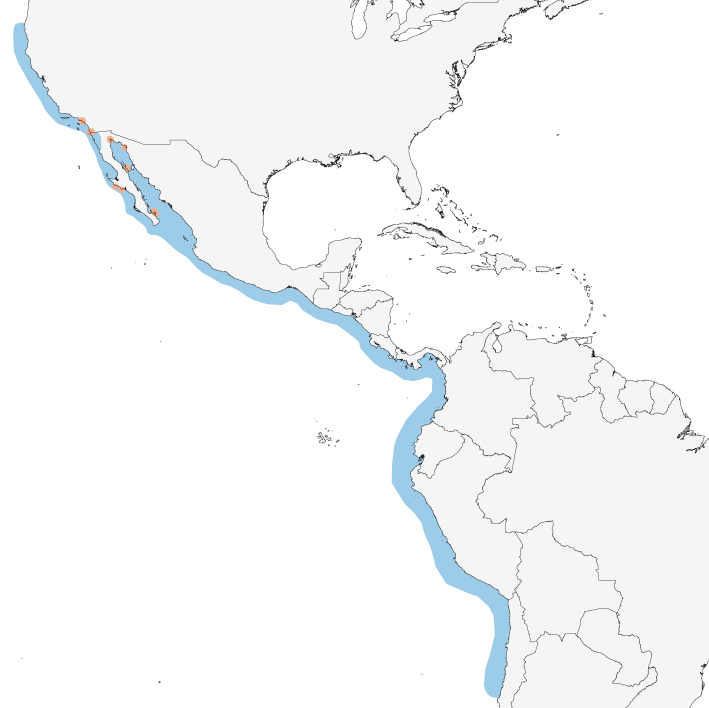 The Elegant Tern is a long-billed tern of the Pacific coast, from the U.S. to Chile. Pale gray above with shaggy black cap in breeding plumage; nonbreeding birds develop white forehead. Best field mark is the slender orange bill with a slight droop. Strictly coastal; commonly found on beaches and estuaries. (from Birds of the World)