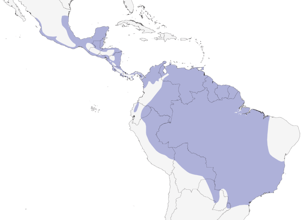 The Boat-billed Heron is a bizarre nocturnal heron of mangroves and freshwater marshes in tropical lowlands; spends the daytime roosting in trees, often in loose groups. Comes out at night to feed along the edge of lakes and rivers. Easily identified by huge ‘boat bill’ and big brown eyes. Adult has black crown, pinkish breast, and silvery gray back; immature pattern similar, but plumage duller and browner overall. (from Birds of the World)