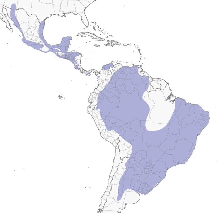 The Ferruginous Pygmy-Owl is a permanent resident from the southwestern United States to southern South America, occurring in tropical, subtropical, and cold temperate lowlands (sea level to 1,400 m in the United States and Mexico; to 1,900 m in Central America). Color varies from rusty to grayish overall, but all color types have fine whitish streaks on crown (not spots) and numerous, narrow dark tail bars. It occupies a wide variety of ecosystems, from semiarid desert scrub to lush tropical rain forest. (from Birds of the World)