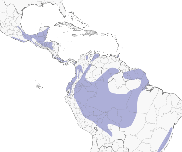 Collared Trogon is a common trogon of humid lowland forests of Central and South America. This is a relatively small trogon. The males are bright green above, with a red belly; upperparts of females are brown. In both sexes the underside of the tail are barred black and white; this barring is particularly narrow in the northernmost subspecies, from Mexico south to Panama. (from Birds of the World)