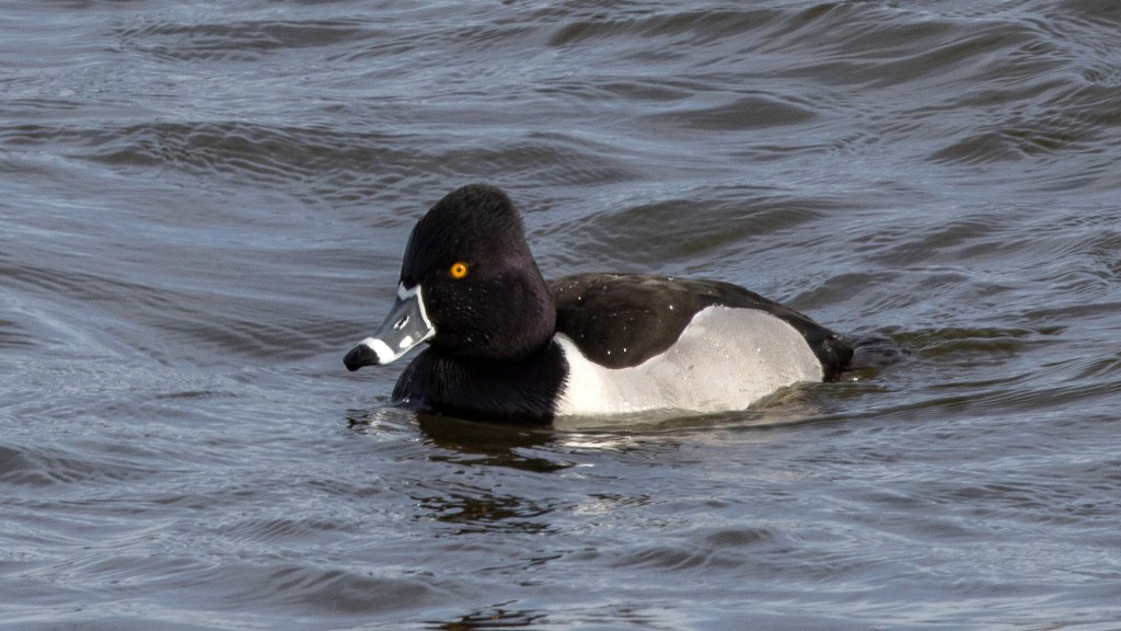 The Ring-necked Duck is a small to medium-sized diving duck with distinctive white bill markings and a short crest that gives its head an angular profile. The species is native to North America, but sightings outside of the continent are increasingly common.