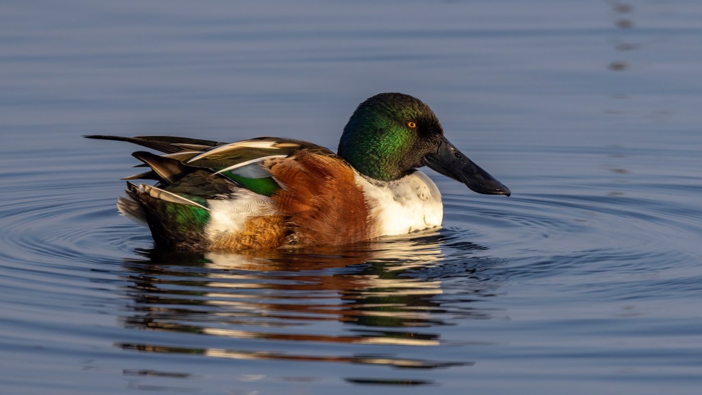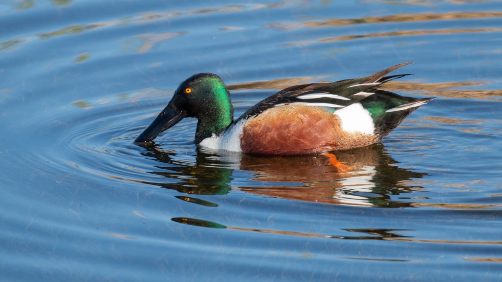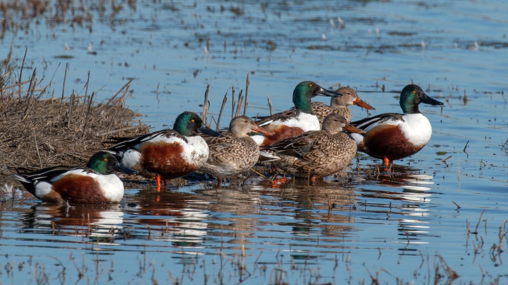 The Northern Shoveler is a Common Winter Visitor and Rare Summer Visitor in California’s Central Valley and can be found in Freshwater Wetlands and Open Water.