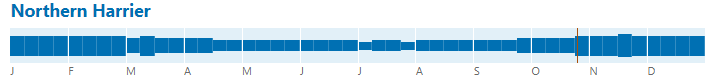 The Northern Harrier is a Fairly Common Winter Visitor and Uncommon Summer Visitor in California’s Central Valley and can be found in Freshwater Wetlands and Grasslands.