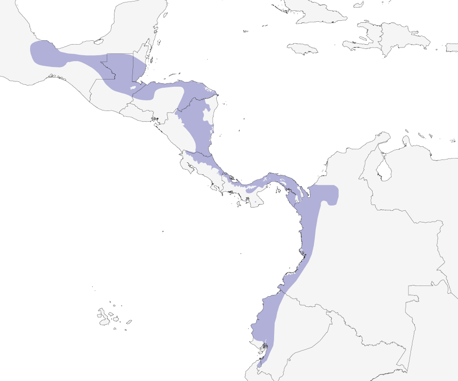 This woodpecker occupies a reasonably broad range, principally over the Caribbean slope of Middle America, where it is found from southern Mexico south to Panama, thence south through the Pacific lowlands of northwest South America to western Ecuador. (from Birds of the World)