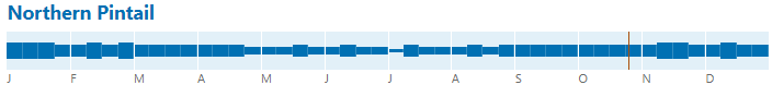The Northern Pintail is a Fairly Common Winter Visitor in California’s Central Valley and can be found in Freshwater Wetlands and Open Water.
