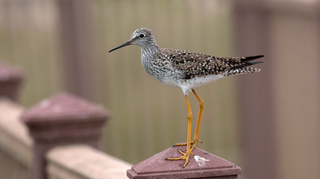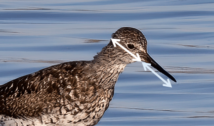 However, when they aren’t posing together, the identification is more challenging. If the bird is clearly a “yellowlegs” (beware of the potential Stilt Sandpiper that may sneak in) and the bill length is equal to or shorter than the width of the head, the bird is a Lesser.