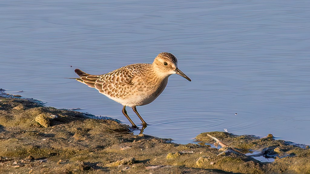 Natural history-wise, Baird’s Sandpiper is a study in endurance and subtlety. Breeding on dry upland tundra, it lays cryptic eggs in shallow scrapes, with both parents sharing incubation duties. On migration, it forages actively for small invertebrates, often running with quick, purposeful strides across open ground. Its long, narrow wings—extending well past the tail—are built for speed and distance, enabling nonstop flights over thousands of kilometers. In the Central Valley, its brief appearance offers a glimpse into one of the most remarkable avian journeys on the continent.