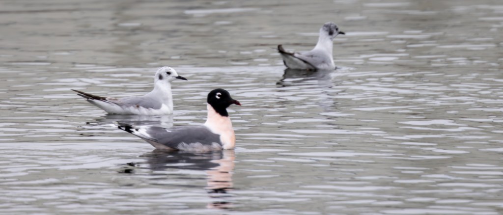 THE FRANKLIN’S GULL MOMENT – Jim Ross and I had just documented Central Valley’s first ever Yellow-footed Gull record at the Modesto WTP when we stopped to look through the usual Bonaparte’s Gulls at the north end of Facultative Pond #3. I immediately noticed that several of the “Bonaparte’s” Gulls were clearly larger and all in full alternate plumage with dark black hoods. A couple of the 9 or so larger gulls took flight and their uniquely patterned primaries stood out proving that they were not Bonaparte’s, but rather Franklin’s Gulls. A couple of the Franklin’s Gulls were also showing their rosy-pink upper chest and throat colors. This was a first for me in Stanislaus County as all of my previous encounters with Franklin’s Gulls involved basic (non-breeding) plumage birds.