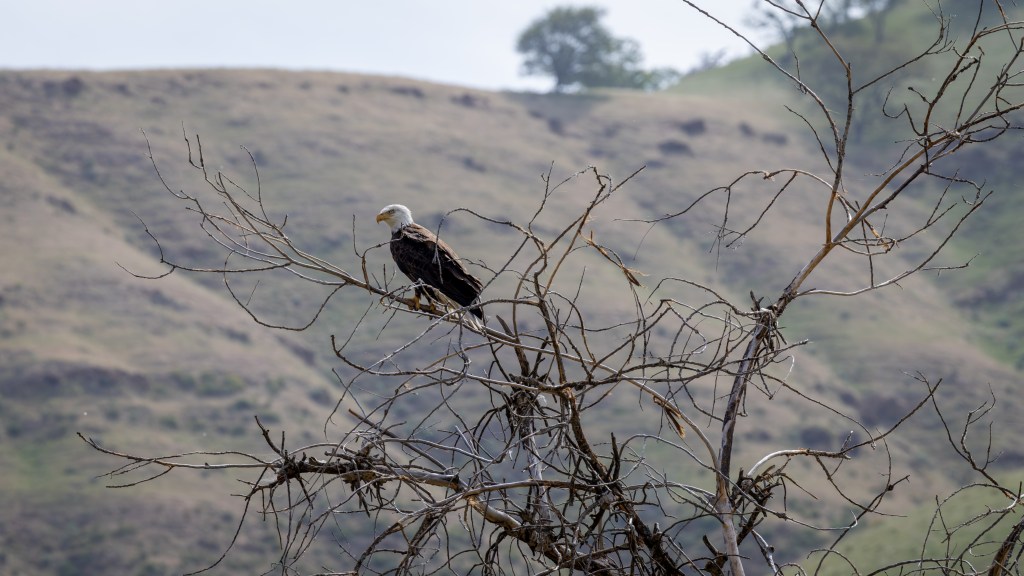 STATUS AND DISTRIBUTION IN CENTRAL CALIFORNIA – In Central California, the Bald Eagle is a seasonal visitor and occasional breeder, most commonly observed during the winter months around large lakes, reservoirs, and river systems such as those in the Sierra foothills and the Central Valley. It is generally uncommon but regular in occurrence, with individuals drawn to areas rich in fish and waterfowl, especially near protected wetlands and managed water bodies. Listed as Least Concern by the IUCN, the species has made a strong recovery from past declines, aided by conservation efforts and restrictions on harmful pesticides. Natural history observations highlight its scavenging habits, preference for tall perch sites, and powerful flight, with nesting typically occurring in remote riparian zones or near reservoirs with minimal disturbance.