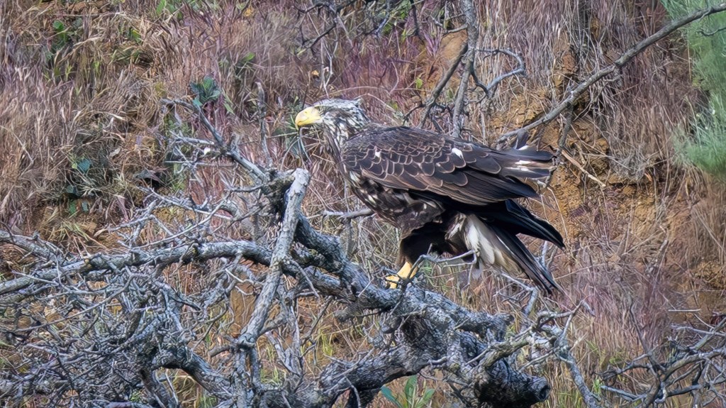THE BALD EAGLE MOMENT – This post deviates a little from my normal “One Moment” encounter with a species, but rather covers a series of “moments” as I documented what can only be assumed to be a successful nesting event for a family of Bald Eagles in Del Puerto Canyon. Seeing a Bald Eagle anywhere is a memorable but regular experience on the Central Valley floor, but finding one in Del Puerto Canyon is fairly unusual.