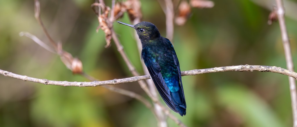 In October 2025, Jim Gain joined a birding tour in Ecuador, exploring its rich biodiversity and stunning landscapes over 14 days. The blog series chronicles his experiences with birds and nature. This post focuses on the Sword-billed Hummingbird, Scarlet-bellied Mountain Tanager and other species at the Zuro Loma Birding Reserve on the Western side of the Andes. - EB8 – THE CRITICALLY ENDANGERED BLACK-BREASTED PUFFLEG