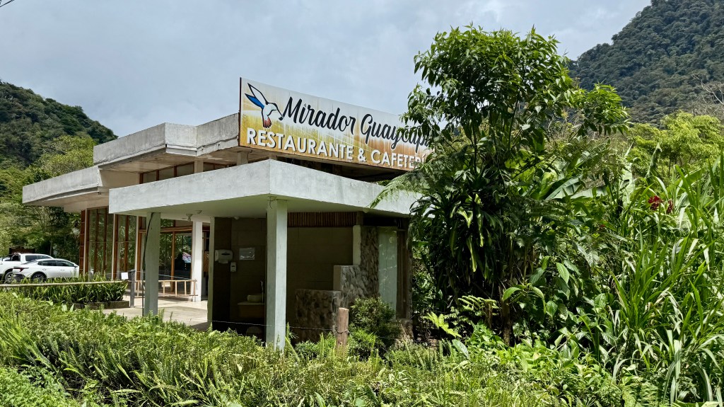 With its open‑air terrace overlooking a lush valley where hummingbird feeders, fruit stations, and flowering shrubs were to draw a constant parade of dazzling birds the Mirador y Restaurante Guaycapi would not disappoint.